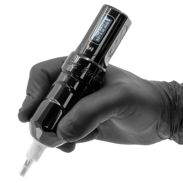 This is our first machine with state-of-the-art technology that learns how you like to work, from the type of ink to the tip/needle, the level of pressure you apply and setting choices. It senses, adapts and optimizes for a smoother tattooing experience.